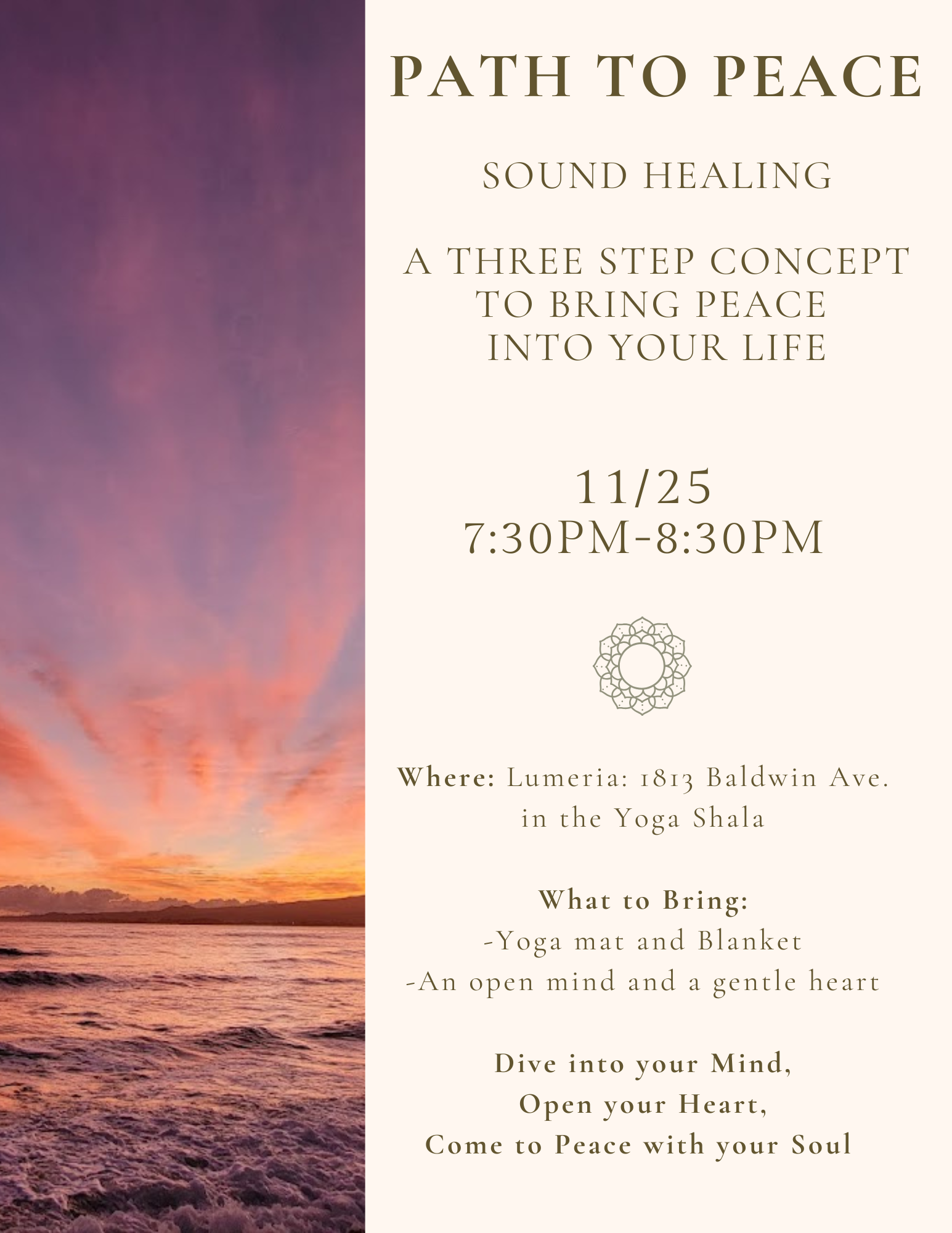 I am dedicated to help others find their own personal path to Inner Peace through Sacred Sound Bowls, Movement Alchemy, Aqua Yoga, Chaka Tuning & Bubble Therapy. We are all unique, our suffering is specific and we all heal differently. I found my path, I want to help you find yours!